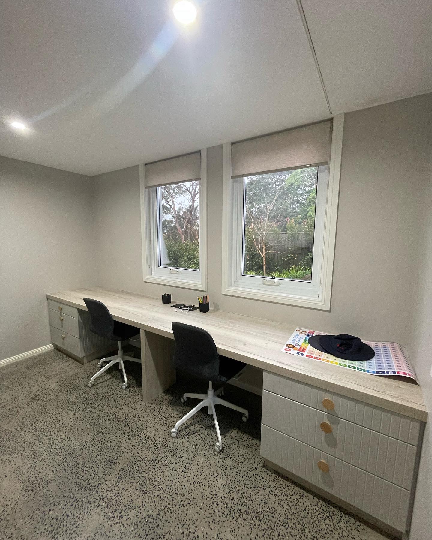 Check out this cluttered space we turned into a study.